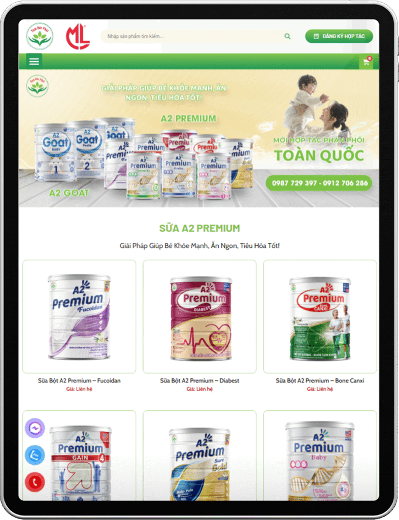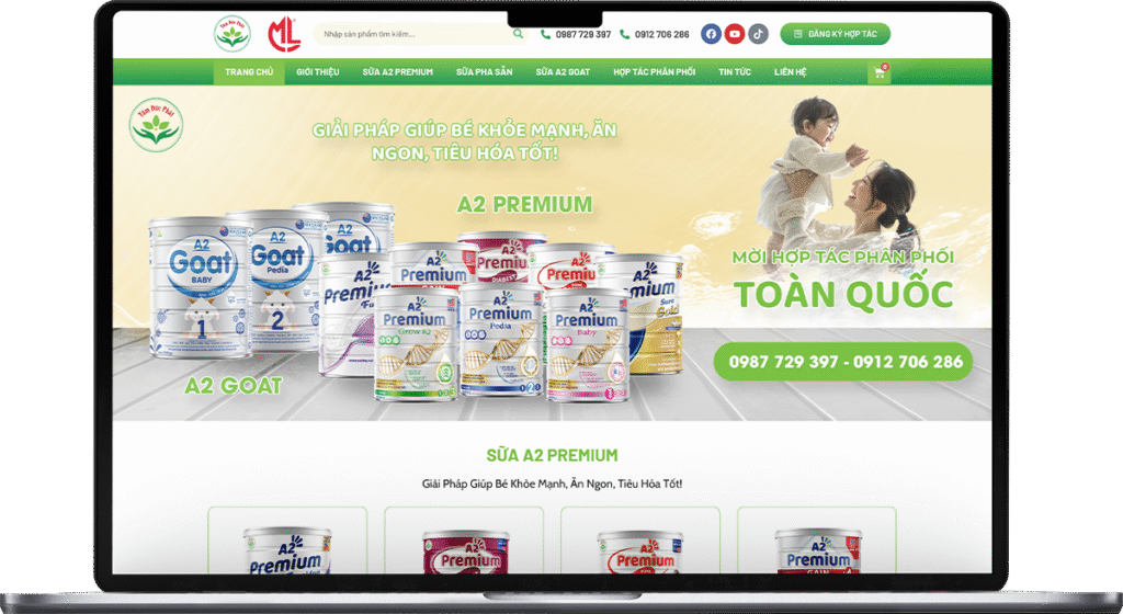 A2 Premium là thương hiệu dinh dưỡng cao cấp thuộc Tâm Đức Phát Group, chuyên cung cấp các sản phẩm tốt cho sức khỏe, hướng đến người tiêu dùng hiện đại mong muốn cải thiện chất lượng cuộc sống bằng chế độ dinh dưỡng khoa học. Với mục tiêu nâng tầm hình ảnh thương hiệu và đẩy mạnh kênh bán hàng trực tuyến, A2 Premium đã hợp tác cùng Trần Thiên Đạt để triển khai dự án thiết kế website chuyên nghiệp.