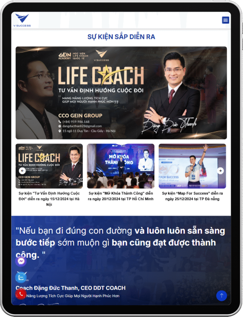 Đặng Đức Thanh – Coaching DDT Việt Nam là đơn vị đào tạo và huấn luyện phát triển cá nhân, hướng đến việc nâng cao tư duy, kỹ năng và hiệu suất làm việc cho học viên, doanh nghiệp. Với mong muốn xây dựng một kênh truyền thông trực tuyến chuyên nghiệp, thể hiện được tầm nhìn và giá trị thương hiệu, Coaching DDT đã hợp tác cùng Trần Thiên Đạt để triển khai dự án thiết kế website.