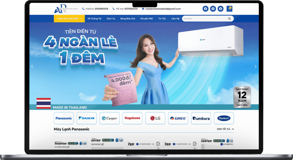 Điện Lạnh An Phát là đơn vị chuyên cung cấp dịch vụ sửa chữa, lắp đặt và bảo trì thiết bị điện lạnh uy tín tại khu vực miền Trung. Với mong muốn mở rộng kênh tiếp cận khách hàng và xây dựng thương hiệu chuyên nghiệp trên môi trường số, An Phát đã hợp tác cùng Trần Thiên Đạt để triển khai dự án thiết kế website chuẩn SEO.