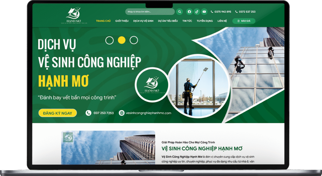 Vệ Sinh Công Nghiệp Hạnh Mơ là đơn vị chuyên cung cấp dịch vụ vệ sinh công nghiệp, vệ sinh nhà xưởng, văn phòng và công trình sau xây dựng tại khu vực miền Trung. Với mong muốn nâng cao thương hiệu và mở rộng tệp khách hàng, Hạnh Mơ đã hợp tác cùng Trần Thiên Đạt để triển khai dự án thiết kế website chuyên nghiệp.
