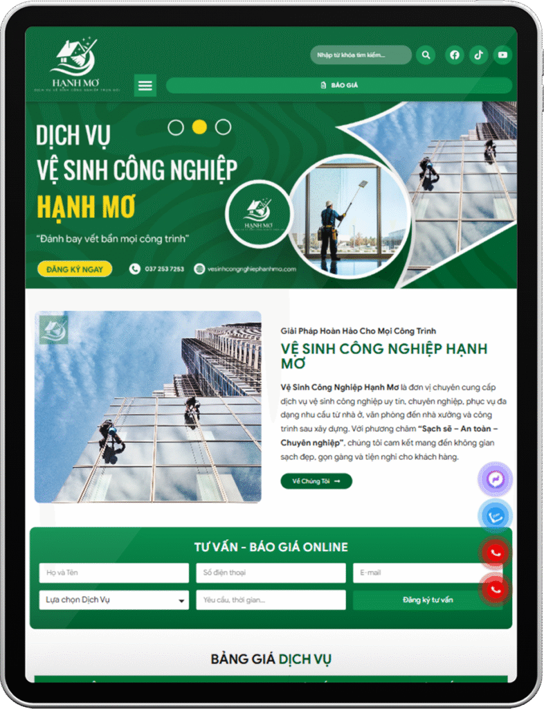 Dự án thiết kế website dịch vụ Vệ Sinh Công Nghiệp Hạnh Mơ