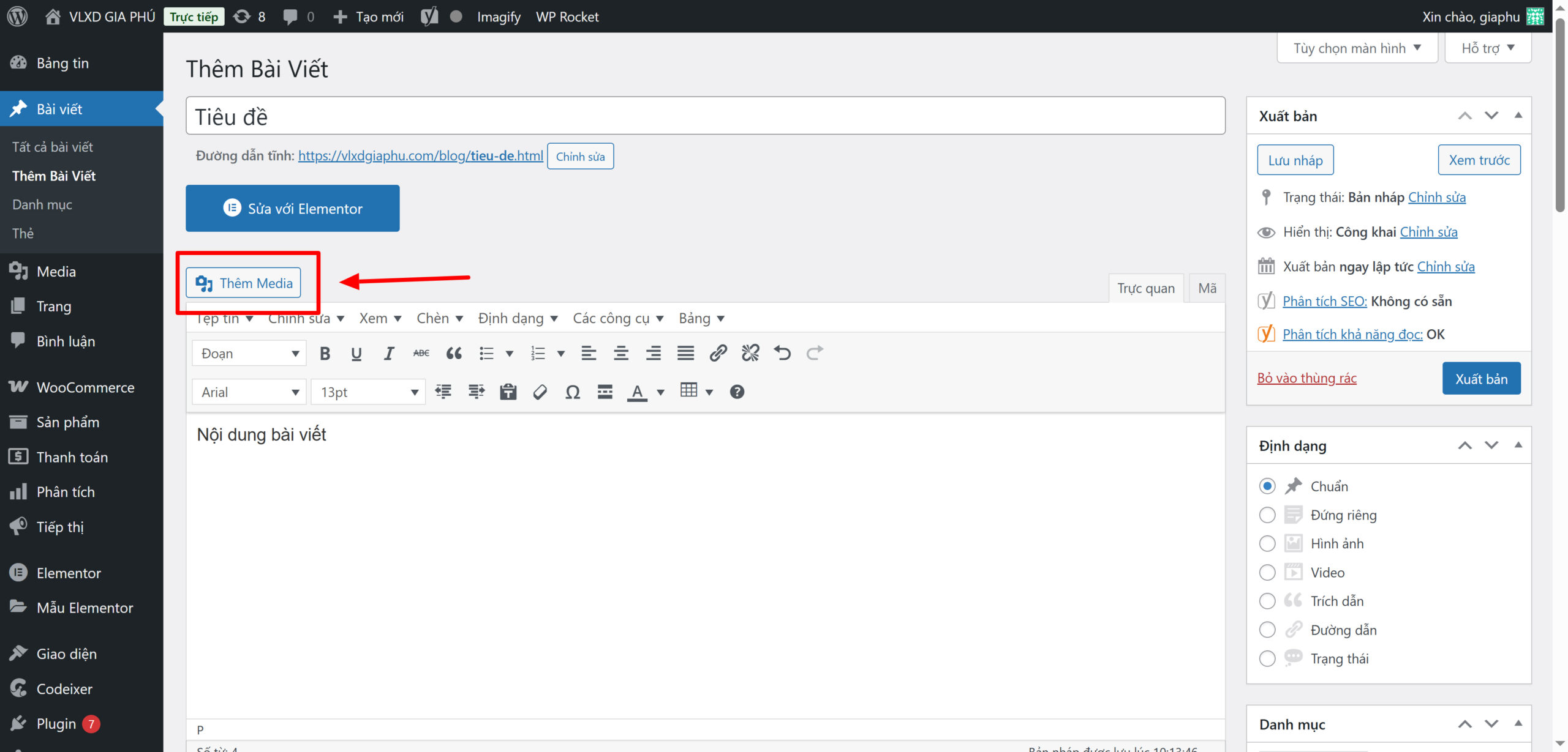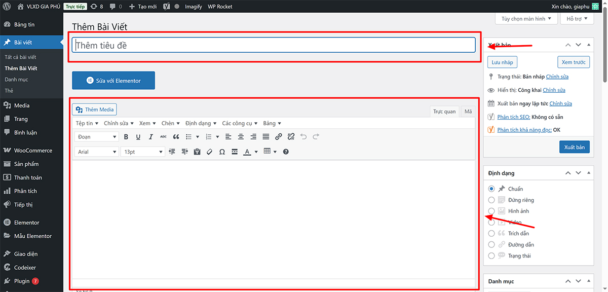 Tiêu đề (Title): nhập tiêu đề bài viết (chứa từ khóa chính nếu là bài SEO).