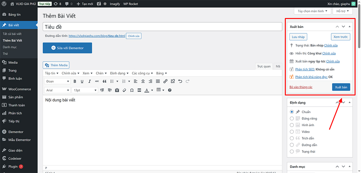 Nhấn Đăng (Publish) để xuất bản ngay.