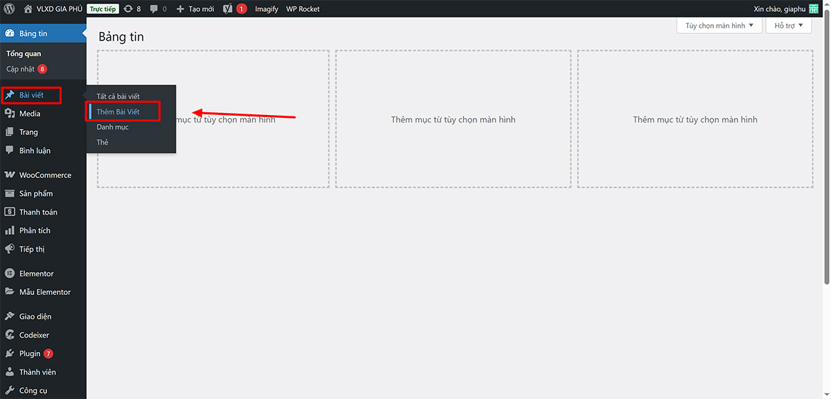Ở menu bên trái → chọn Bài viết → Viết bài mới (Add New).