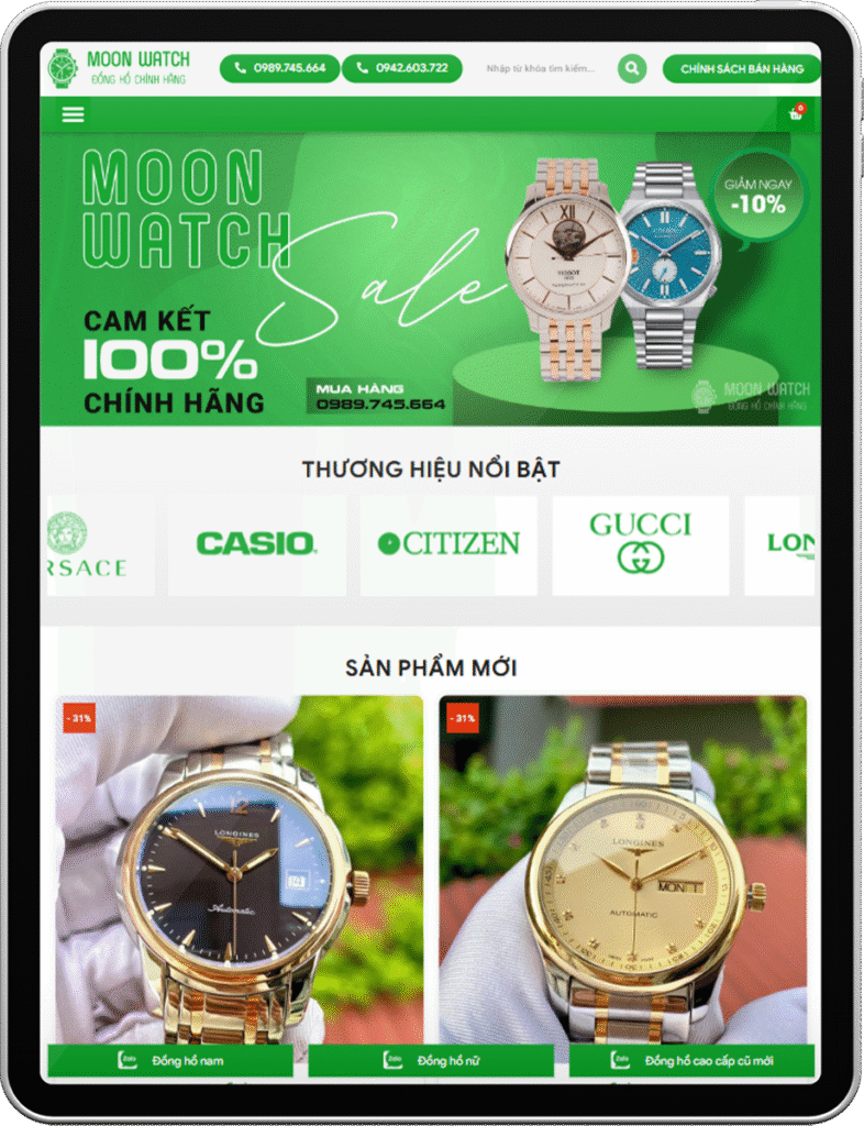 Moon Watch là thương hiệu chuyên cung cấp các dòng đồng hồ chính hãng, hướng đến phân khúc khách hàng yêu thích sự tinh tế và đẳng cấp. Với mong muốn sở hữu một website hiện đại, sang trọng và thể hiện đúng tinh thần thương hiệu, Moon Watch đã hợp tác cùng Trần Thiên Đạt để triển khai dự án thiết kế website chuẩn SEO, giao diện tối ưu trải nghiệm người dùng.