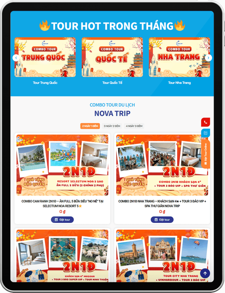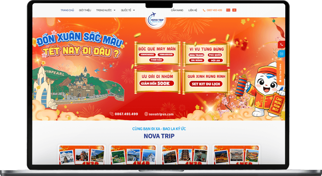 Nova Trip là đơn vị hoạt động trong lĩnh vực du lịch, chuyên cung cấp tour trong nước và quốc tế uy tín, đáp ứng đa dạng nhu cầu từ du lịch nghỉ dưỡng, khám phá đến công tác và trải nghiệm cao cấp. Với định hướng mở rộng thị trường và nâng cao hình ảnh thương hiệu trên môi trường số, Nova Trip đã lựa chọn giải pháp thiết kế website chuyên nghiệp, chuẩn SEO.