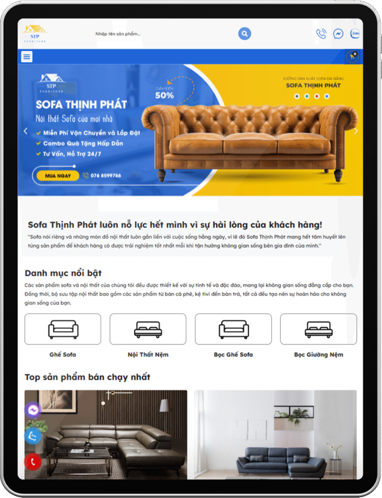 Sofa Thịnh Phát là đơn vị chuyên sản xuất và cung cấp sofa cao cấp với nhiều mẫu mã hiện đại, đáp ứng nhu cầu thẩm mỹ và tiện nghi của khách hàng. Nhằm nâng cao sự chuyên nghiệp và mở rộng thị trường online, Thịnh Phát đã hợp tác cùng Trần Thiên Đạt để thiết kế một website chuẩn SEO, tối ưu trải nghiệm người dùng và thể hiện đúng phong cách thương hiệu.