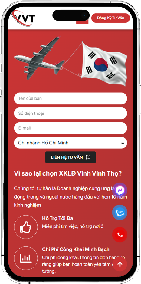 Mục tiêu của dự án là xây dựng một website hiện đại – thân thiện – dễ quản trị, giúp học viên và người lao động dễ dàng tra cứu thông tin chương trình, chi phí, quy trình đăng ký và liên hệ trực tuyến. Website được thiết kế trực quan, tối ưu hiển thị trên mọi thiết bị, tích hợp blog chia sẻ kiến thức, thư viện hình ảnh – video và form đăng ký online. Qua đó, Vinh Vinh Thọ có thể mở rộng độ phủ thương hiệu, thu hút nhiều ứng viên tiềm năng và khẳng định uy tín trong lĩnh vực xuất khẩu lao động.