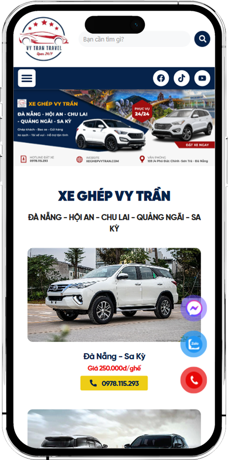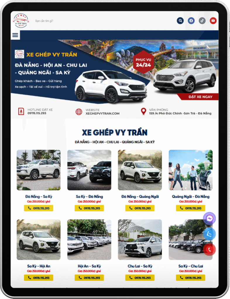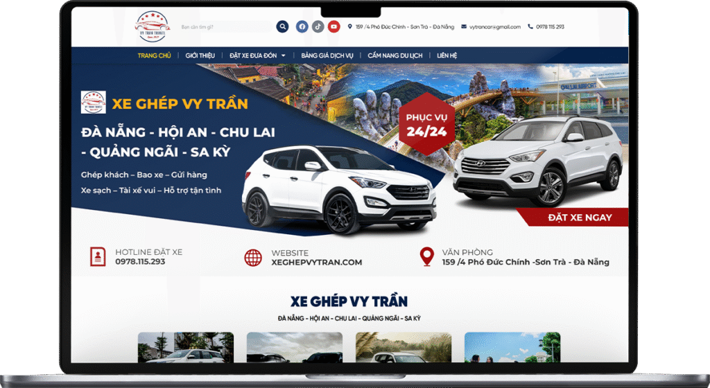 VY TRẦN XE GHÉP là đơn vị chuyên cung cấp dịch vụ xe ghép tuyến Đà Nẵng – Quảng Ngãi uy tín, an toàn và tiện lợi, phục vụ nhu cầu đi lại của khách hàng địa phương và khách du lịch. Nhằm mở rộng kênh tiếp cận khách hàng, xây dựng hình ảnh chuyên nghiệp và gia tăng lượng đặt xe online, VY TRẦN đã hợp tác cùng Trần Thiên Đạt triển khai dự án thiết kế website hiện đại.