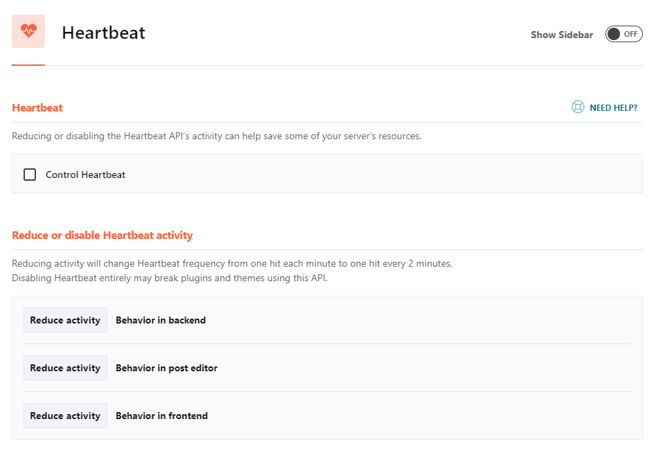 - Control Heartbeat: Giảm hoặc vô hiệu hóa các hoạt động API, có thể giúp hạn chế sử dụng tài nguyên trên máy chủ của bạn.