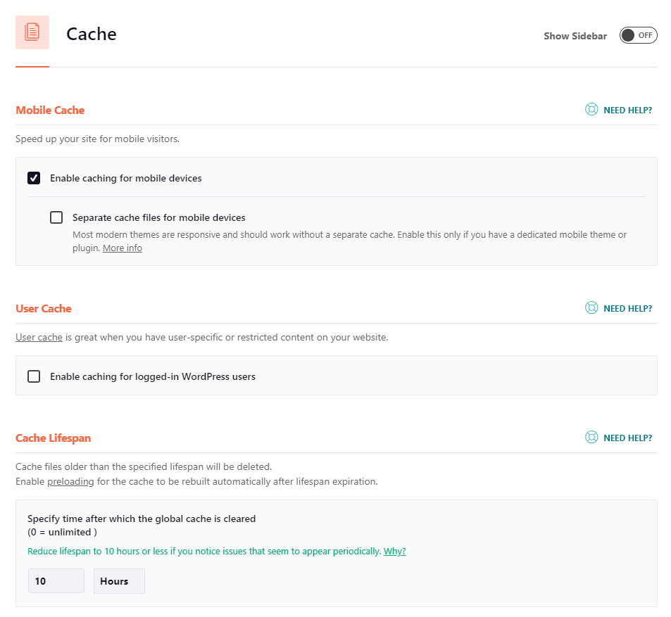 - Separate cache files for mobile devices: tách riêng các files cache dành cho thiết bị di động và máy tính. Nếu giao diện của bạn có khả năng responsive thì không nên tick vào mục này.