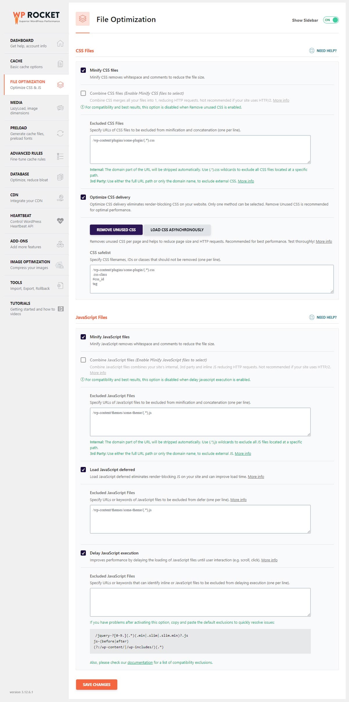 - Excluded JavaScript Files: Loại bỏ các file JS mà bạn không muốn nén và gộp, giúp giải quyết tình trạng vỡ giao diện và lỗi tính năng.